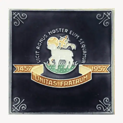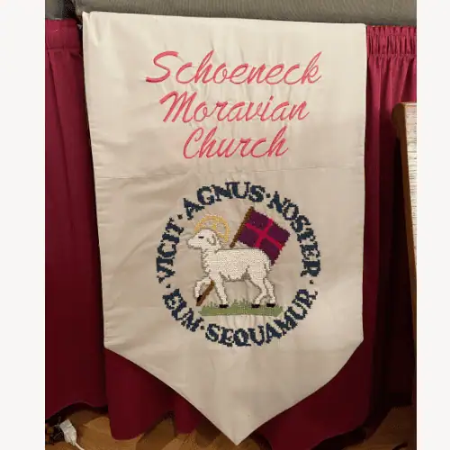 The Jablonski Seal is the Official Seal of the Moravian Church and can be found in all Unity provinces. It is a unifying bond of the Moravian Church throughout the world. The Moravian Seal stands in a prominent position in almost every Moravian church sanctuary and is also featured in many other Moravian buildings and institutions. It might be represented in a stained glass window, it might be carved in wood, embroidered on cloth, or it might be painted right on the wall. No matter what form it takes, it’s message is the same. As Moravians, we follow the victorious Lamb of God.