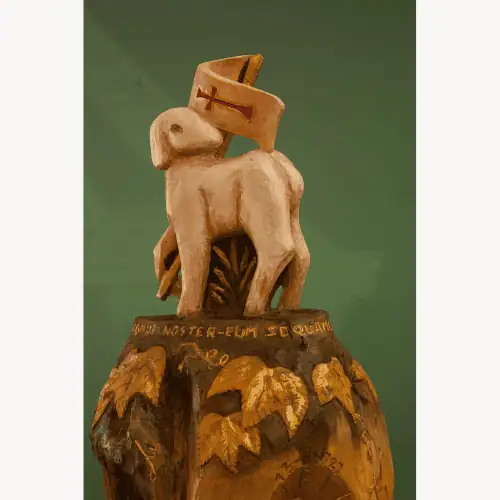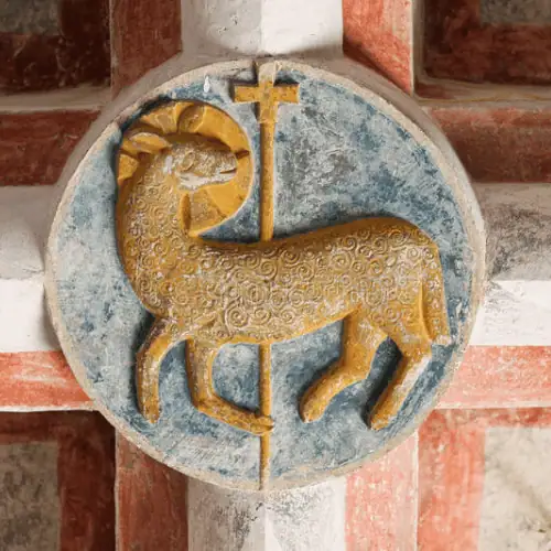 Jesus chose to suffer death on the cross as a sign of his full obedience to the will of the Father. As the Lamb of God, Jesus Christ is the perfect sacrificial offering that atones for the sins of humanity. The Lamb carries a flag declaring that Christ is victorious in spite of the challenges that he encountered.