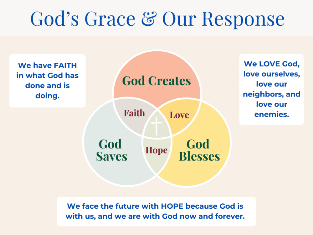 What we can learn from this is to look beyond shared traditions or agreement in doctrine when we think about the essentials of our unity. There is also the reality of God’s grace in creation, the redemptive work of Christ, and the work of the Holy Spirit in our lives, which call forth our response in faith, hope, and love. When we respond to God’s actions, we are in a relationship with God.